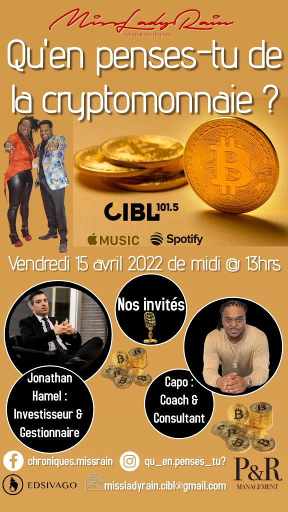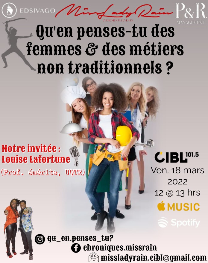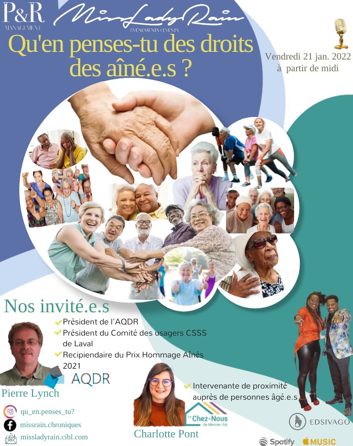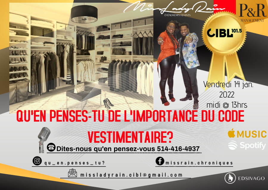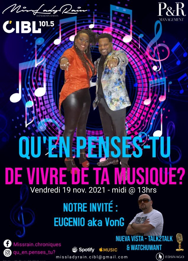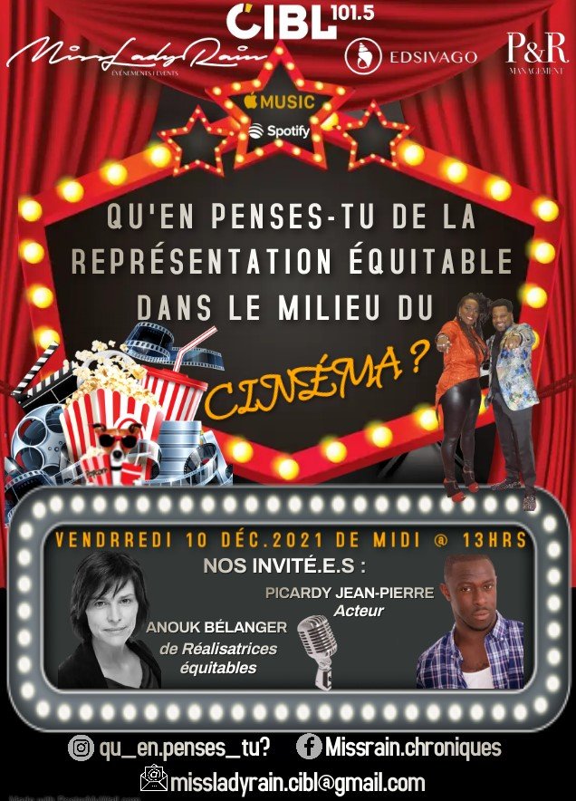 « Qu’en penses-tu avec MissRain & John D. ? » was a french local radio show of reflection and collective discussion, where we tackled societal issues with our special guests from all type of domain. Each week, through the voices of your vibrant host MissRain and her distinguished sidekick Jonh D., you’ll hear what others are thinking but not saying out loud in any society subject .